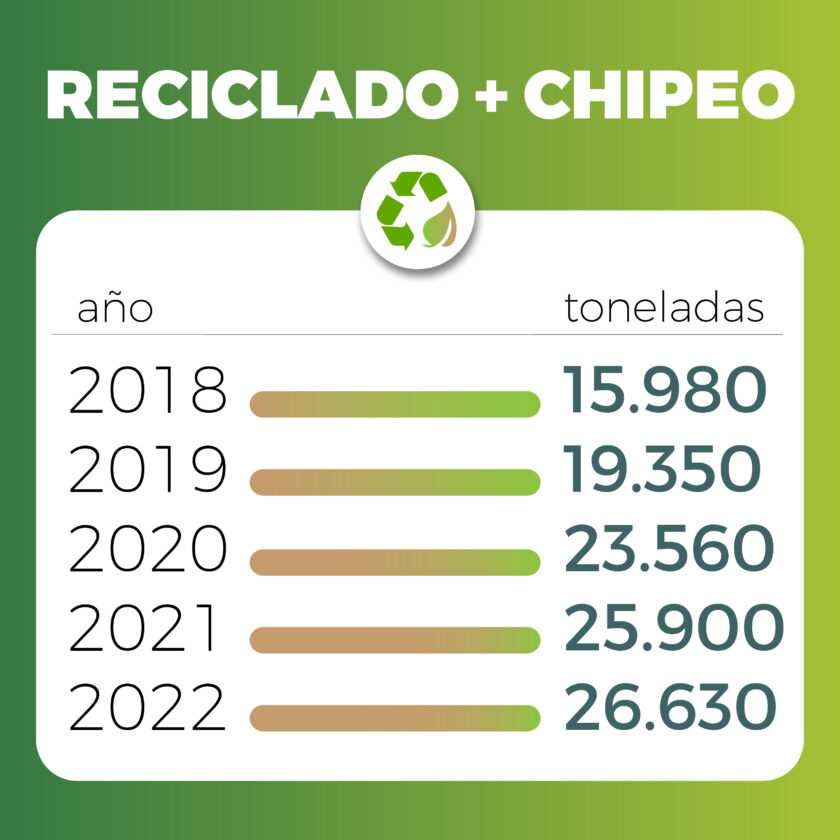 Asimismo, la Comuna convirtió 1.800 toneladas de residuos forestales en chipeo, el cual utiliza como abono para el arbolado público, y realizó pruebas piloto para la conversión de plásticos de un solo uso y restos de poda en combustible dentro de la planta de Cementos Avellaneda, ubicada en Olavarría.