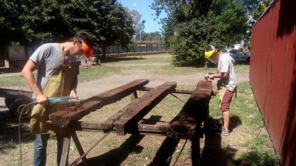 En varias, ya se emplazaron bancos hechos con durmientes de quebracho del ferrocarril con bases hormigón, fabricados en la Universidad.