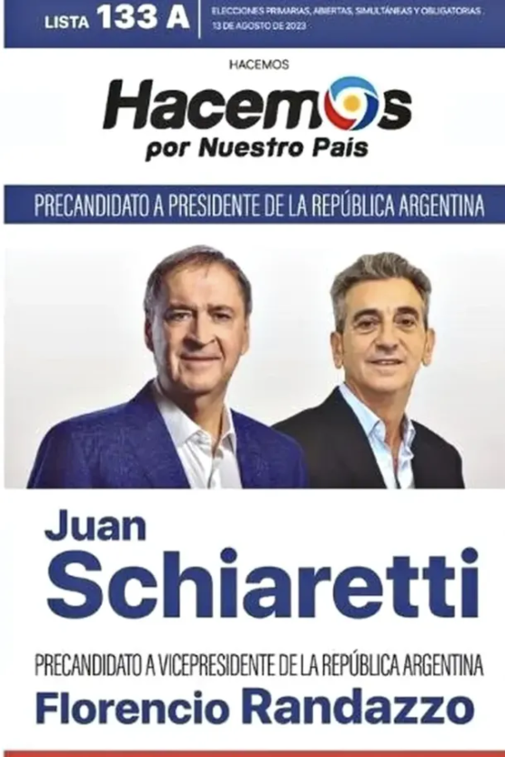 Hacemos por Nuestro País tampoco tiene competencia interna y tendrá en los cuartos oscuro la boleta de la fórmula Juan Schiaretti – Florencio Randazzo.