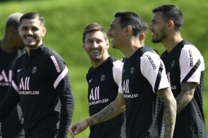 En el entrenamiento, bajo un implacable sol veraniego y bastante calor, también estuvieron presentes el brasileño Neymar, el francés Kylian Mbappé y los argentinos Angel Di María, Leandro Paredes y Mauro Icardi, aunque todos se vieron eclipsados por la presencia de Messi.