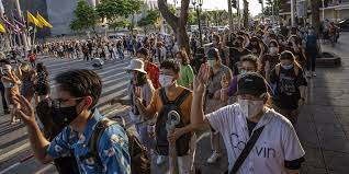 La manifestación de hoy fue convocada por un movimiento de oposición al gobierno tailandés, que empezó en el verano del año pasado, por lo que también se exigió la renuncia del actual primer ministro, excomandante en jefe del ejército y quien llegó al poder mediante otro golpe de estado en 2014.