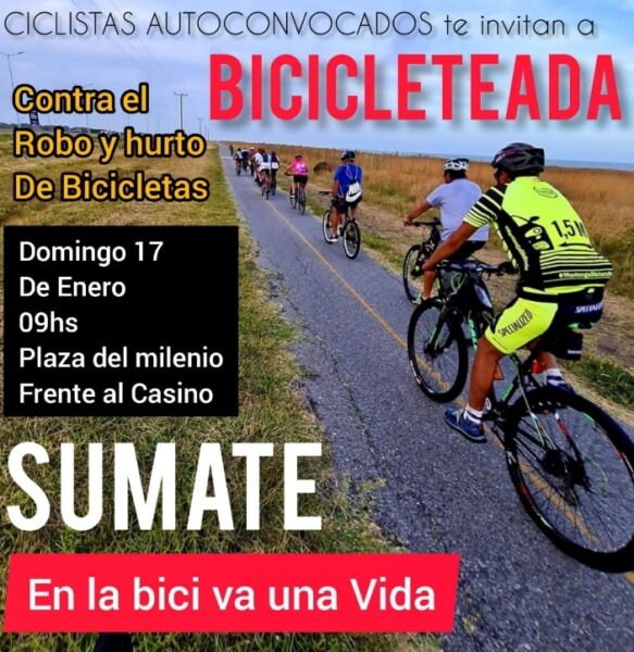 Bajo el lema “ en la bici va una vida “ todo aquel que use una bicicleta para pasear, ir a su trabajo, en forma deportiva, recreativa o hacer actividad física está convocado para el día 17 a las 9.00 hs frente al Casino Central.