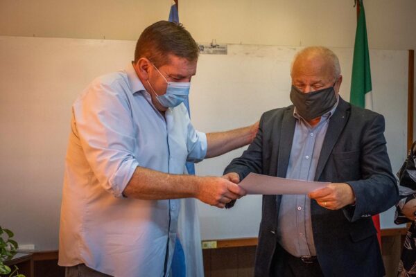 El presidente de la Casa D’Italia recibió la distinción de manos de Guillermo Montenegro por “su valioso y desinteresado aporte como inmigrante italiano en General Pueyrredon y por impulsar y fortalecer la relación entre ambos países”.