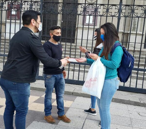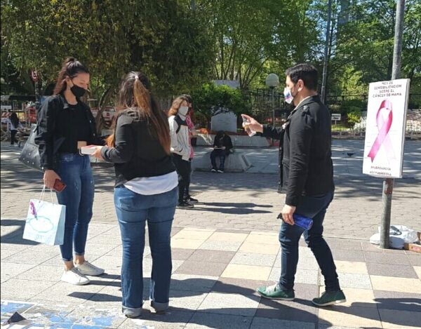 En el mes de Sensibilización sobre el cáncer de Mama, por tercer año consecutivo y adaptándose a la pandemia, FUERZA ROSA realizó una intervención este sábado en la Peatonal San Martín entregando más de 500 lazos rosas que simbolizan la lucha (sanitizando las manos de los mismos en la entrega), con banners informativos y dialogando con los transeúntes que se mostraron con muy buen recibimiento. Durante todo el mes de Octubre seguirán presentes con dicha Campaña por redes sociales con la información necesaria para realizarse los chequeos y la autoexploración mamaria, y también estarán presentes en distintos puntos de la ciudad entregando lazos. Tanto el organizador Daniel González Díaz como la Dra Ivana Giménez, quienes llevan a cabo estas jornadas, intentan concientizar y prevenir la enfermedad en las que se calcula que una de cada ocho mujeres puede padecerla, y que casi el 90% de los tumores se detectan con la realización de una mamografía.