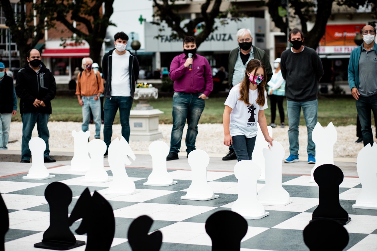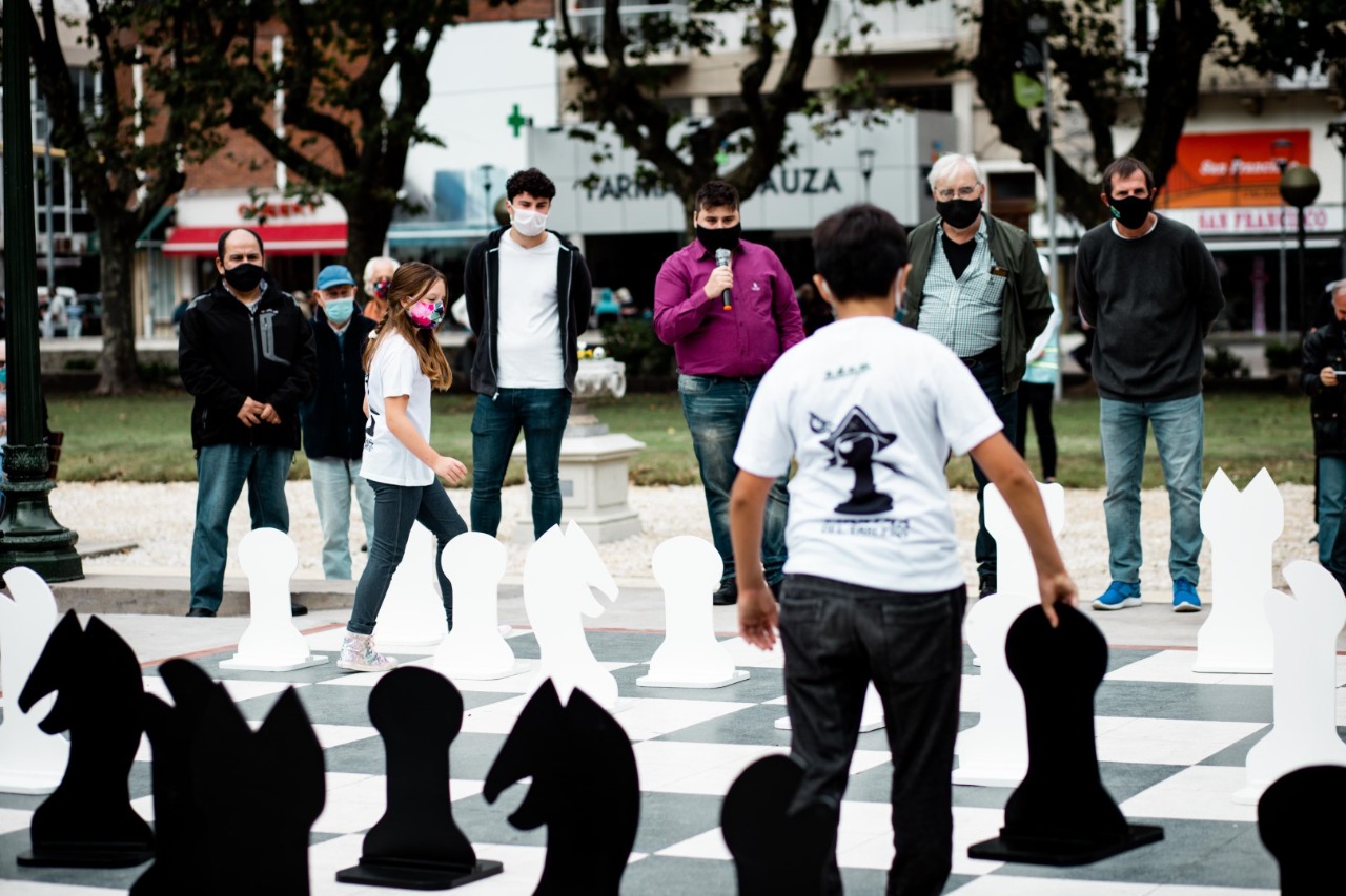 La puesta en valor de este espacio, ubicado sobre el Palco de los Músicos, también recuperado por el Municipio recientemente, se dio con una partida donde se desarrolló la apertura Gambito de Dama, entre Benjamín Delicio, campeón sub 10 absoluto y Malena Layus, subcampeona sub 8 absoluto, la cual, luego de varias movidas, se acordó terminarla en tablas (empate).