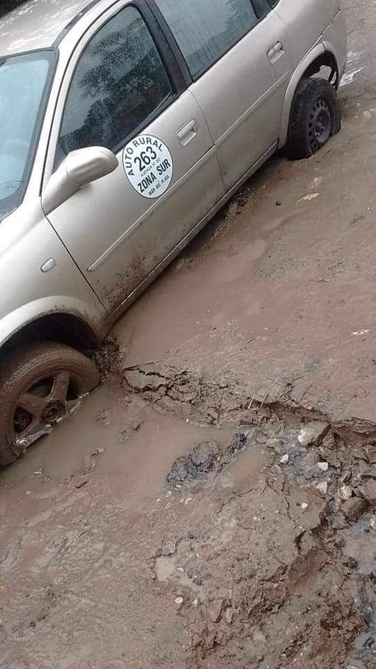 La calle scaglia de parque peña por dónde circulan 3 líneas de colectivos ,se encuentra en este estado, ocasionando los múltiples trastornos y accidentes como los que se pueden apreciar en las imágenes.