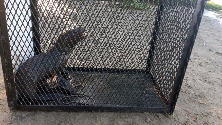 Una vez rescatado, el ejemplar fue colocado dentro de una jaula y horas más tarde fue devuelto al mar desde una playa de Punta Mogotes.