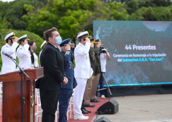 Con motivo de conmemorarse el tercer aniversario del último contacto del submarino ARA San Juan, se realizó en la Base Naval una ceremonia en homenaje a la tripulación con la presencia de familiares y autoridades.