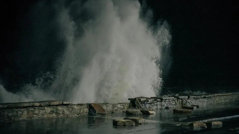 En el Paseo Dávila, donde varios bloques de piedra que componen el murete de protección de veredas fueron removidos y cayeron producto del impacto de olas de importante tamaño y fuerza.