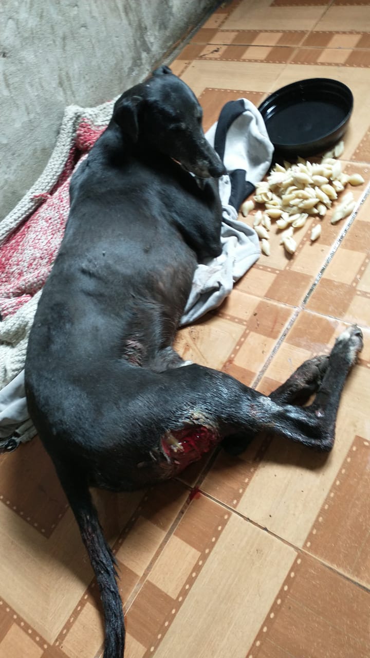 Una vecina del lugar lo agarró y lo llevó a su casa pidió desesperada un veterinario que recién consiguió para el otro día a la mañana, gasto mucho dinero pero aún no alcanza, para cubrir los gastos.