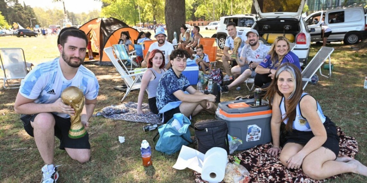 Cientos de hinchas con camisetas de la selección nacional y banderas celestes y blancas se concentraban esta mañana en el Obelisco, en pleno centro porteño, y en las puertas del predio de la AFA, en el partido bonaerense de Ezeiza, para acompañar la caravana de festejos que el equipo Campeón del Mundo realizará por gran parte de la ciudad de Buenos Aires.