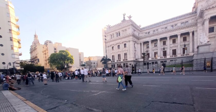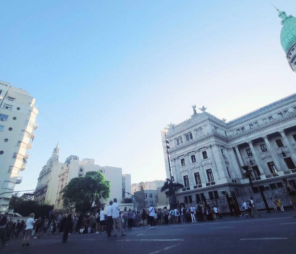 Unas 1500 personas esperan que se sumen las grandes columnas de mitancia que van al congreso en apoyo a CFK.