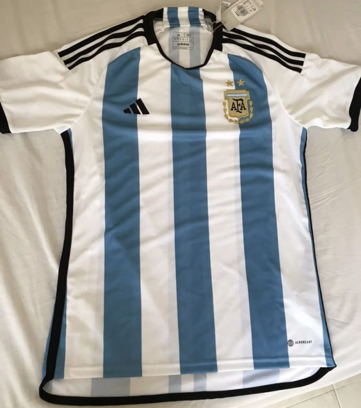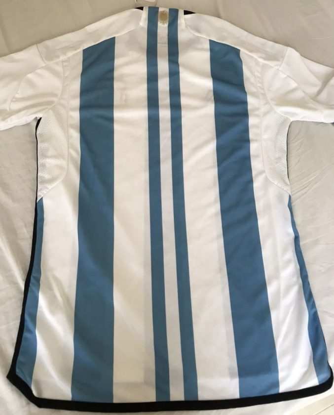 Según el sitio web FootyHeadlines, especializado en camisetas, la nueva piel de la Scaloneta tendrían los tradicionales bastones blanco y azules (un tono parecido a la que se utilizó en el Mundial de Brasil 2014) y el nuevo logo de Adidas. En la parte de atrás cambia la cosa. En la parte de la nuca hay un sol en el medio de dos líneas, simulando una bandera que recorre toda la espalda.