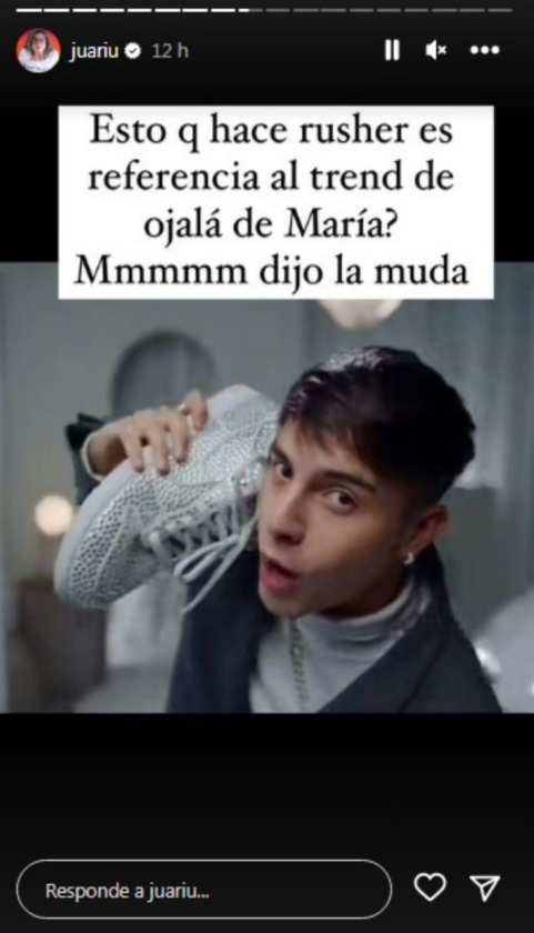 Por su parte, Juariu también descubrió que Rusherking hizo un guiño en el video a otro clip de su expareja. «¿Esto que hace él es en referencia al trend de María? Mmmm», cuestionó.