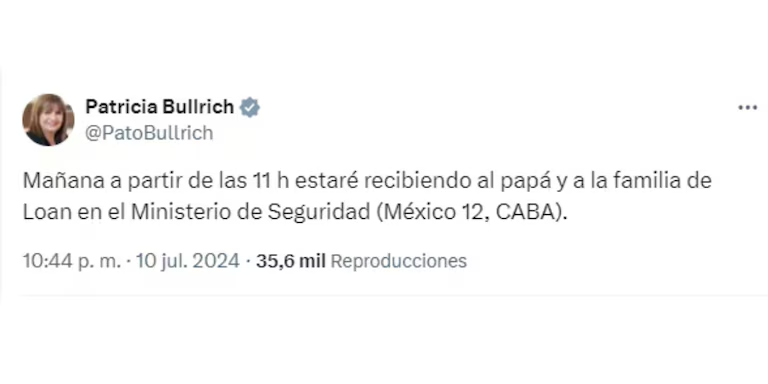 La ministra de Seguridad, se reunirá con los padres de Loan Danilo Peña, el nene de cinco años desaparecido desde el 13 de junio.