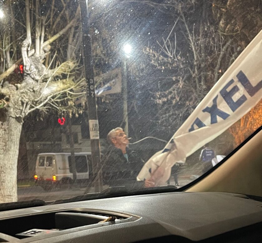 Un WhatsApp con dibujos de diablitos y gorilas informa: “Buen día, compañeros y compañeros, nos robaron todos los pasacalles en Olmos y pusieron los de Garro. En la rotonda de ruta 36 había 12 y quedaron 2 y en 185 y 44 arriba de la verdulería limpiaron todos”.