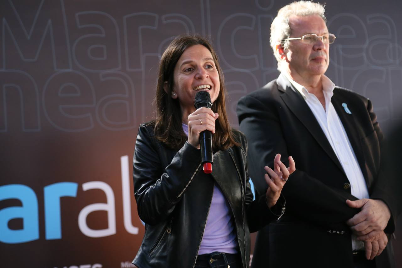La directora ejecutiva de ANSES, Fernanda Raverta, junto al ministro de Cultura de la Nación, Tristán Bauer, les dio la bienvenida hoy en la estación de tren de Mar del Plata a 600 chicas y chicos de las becas Progresar que fueron a presenciar el 37º Festival Internacional de Cine.