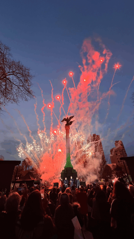 Durante el evento, las melodías de ‘O Sole Mio y Nessun Dorma envolvieron el renovado lugar, emocionando a vecinos y referentes de la comunidad italiana, en tanto que el momento cúlmine llegó con el cierre, cuando los músicos unieron sus voces para interpretar Nessun Dorma, mientras que los fuegos artificiales iluminaron el cielo y el monumento se encendió con los colores de la bandera italiana.