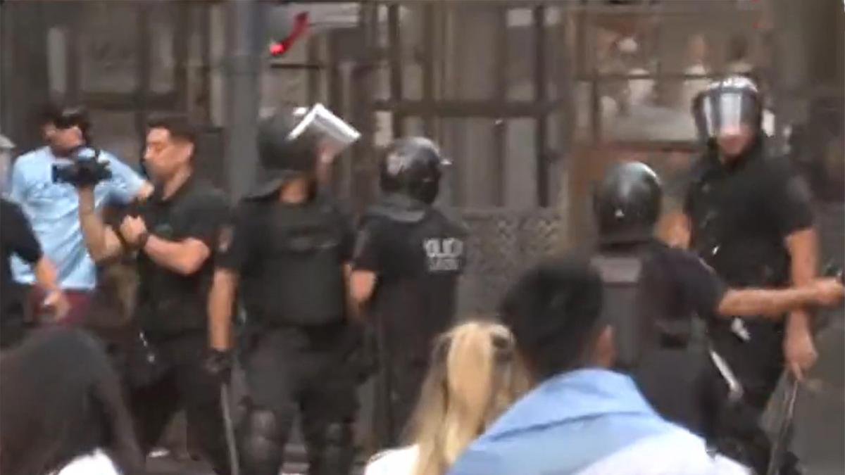 Familias y grupos de amigos se acercaron al Obelisco para festejar la goleada de la Selección y agentes de la policía porteña avanzaron sobre un grupo de personas que se habían trepado a las vallas que el Gobierno local había instalado en la zona, donde al menos una persona fue aprehendida.
