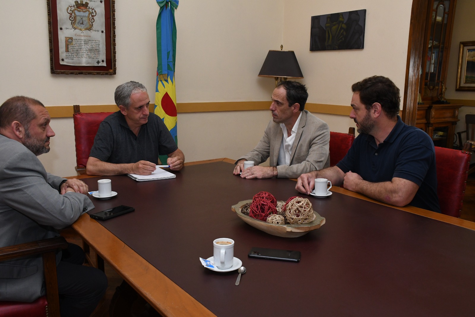 El Presidente del Distrito V, Ing. Jorge Jurado, el Tesorero, Ing. Damián Andrieu, y el Vocal y Delegado en Chascomús, Ing. Juan Pablo Candiotto, se reunieron en el día de ayer con el Intendente de Chascoms, Javier Gastn, para continuar con el diálogo institucional y promover la actividad de los ingenieros en el municipio.