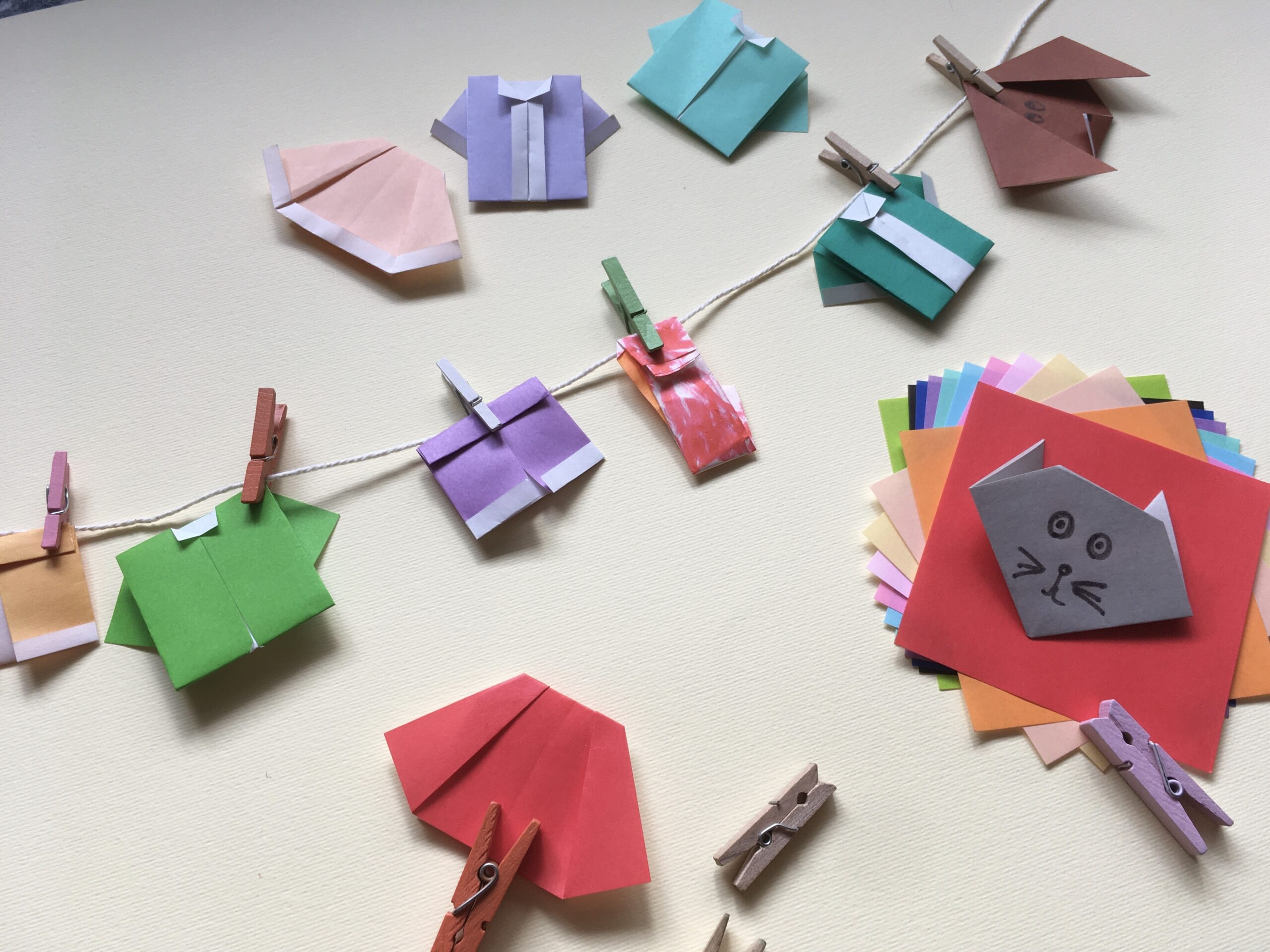 Materiales: papeles glasé o afiche cortado en cuadrados, tijera y pegamento, lápices y marcadores.