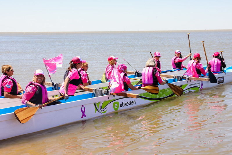 Cerca del mediodía, un grupo de mujeres se acercaron con sus botes al Río de la Plata. Pero ellas no eran deportistas comunes, sino un ejemplo de superación por haber pasado por un cáncer de mama. Todas pertenecían a la Asociación Civil Rosas del Plata. Reman porque la actividad les brinda un plus en el tratamiento relacionado con secuelas que dejan algunas prácticas oncológicas.