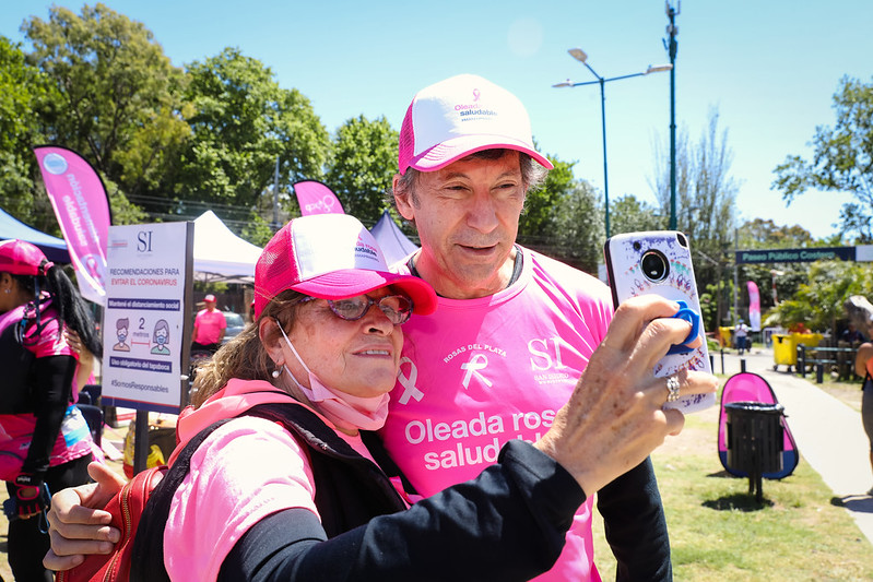 Desde muy temprano, vecinos se sumaron a la iniciativa a orillas del Río de la Plata con remeras, gorros o cintas rosas, el color emblemático que identifica a la concientización acerca de la detección temprana del cáncer de mama.