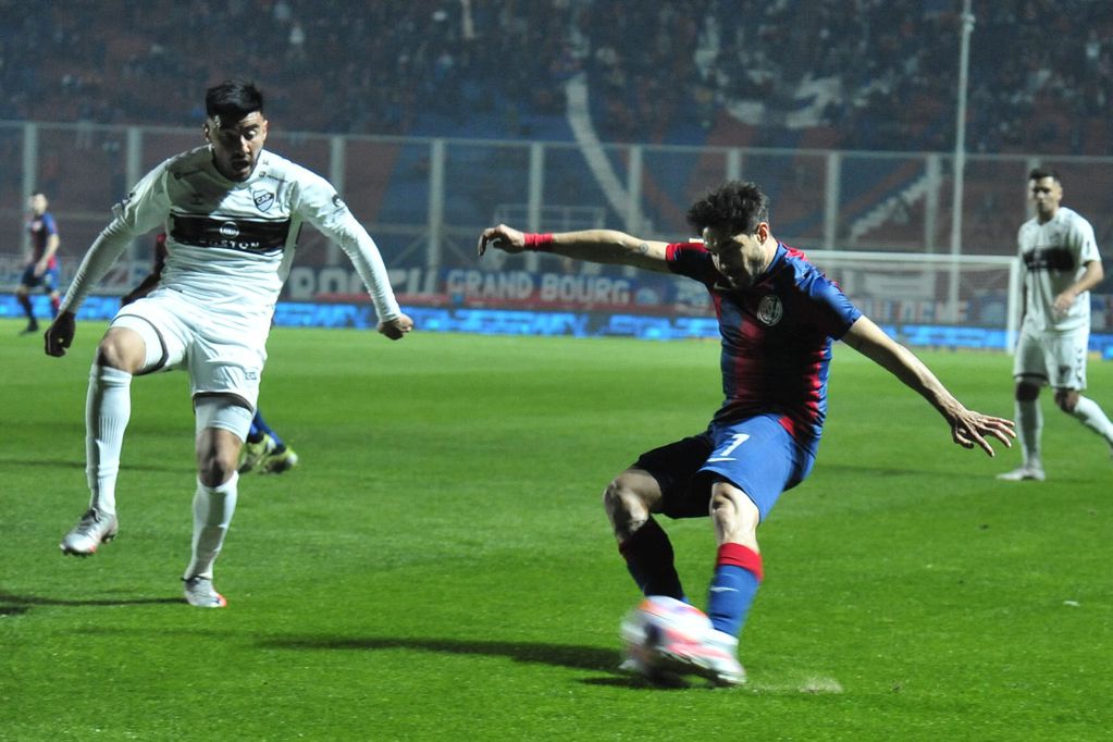 En la primera llegada clara del partido, el «Ciclón» abrió el marcador tras dos cabezazos en el área, el primero de Adam Bareiro y el del gol, del defensor Gastón Hernández (su tanto inaugural en la máxima categoría) tras un centro de primera de Ezequiel Cerutti.