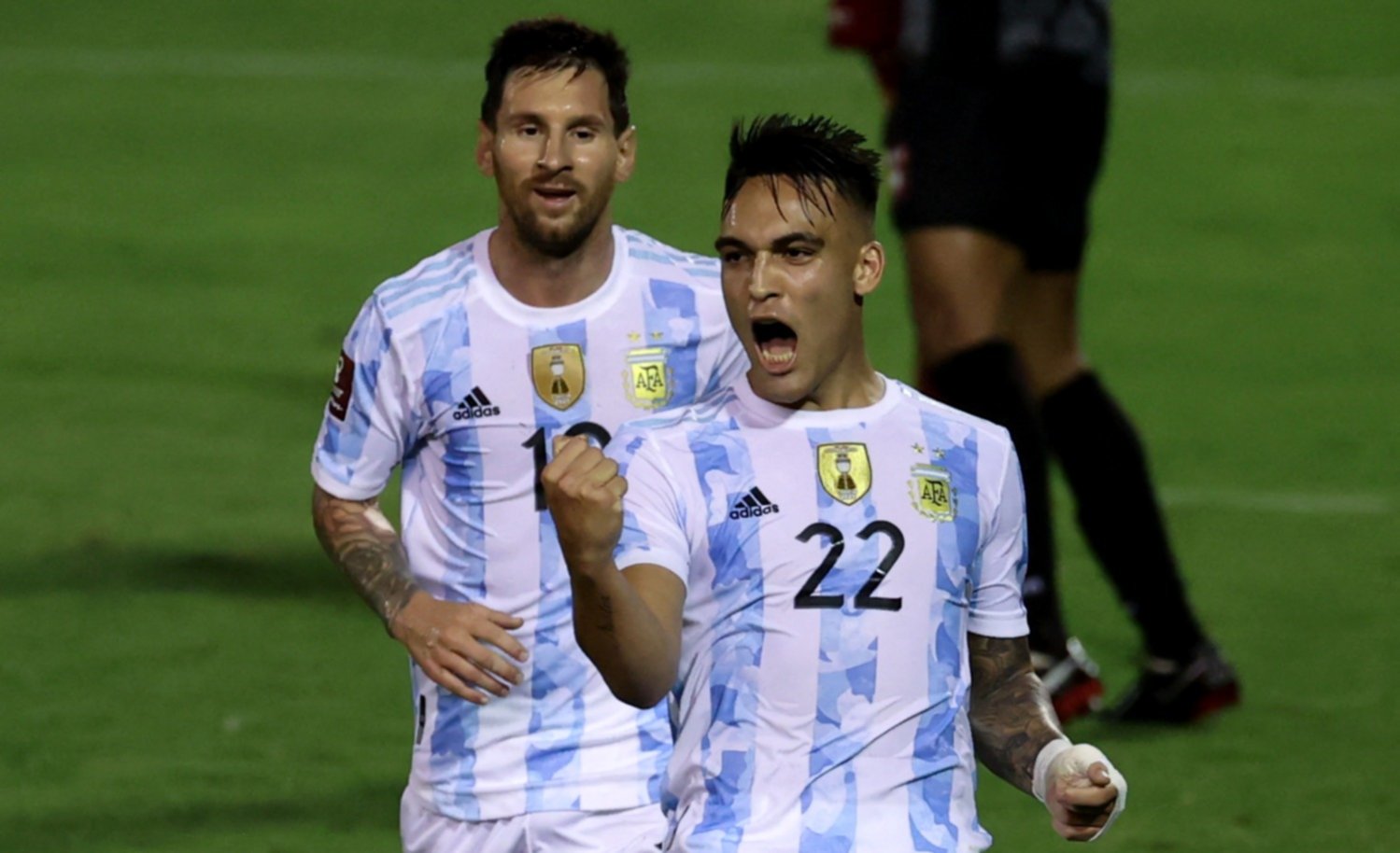 Argentina vence a Venezuela por 1 a 0 al cabo del primer tiempo con un gol de Lautaro Martínez en el segundo minuto de descuento, en este partido correspondiente a la novena fecha de Eliminatorias Sudamericanas que se desarrolla en el estadio Olímpico, de Caracas, donde el local sufrió la expulsión del ingresado zaguero central Luis Martínez a la media hora de juego por una violenta infracción a Lionel Messi.