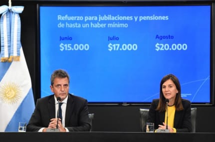 La directora ejecutiva de ANSES, Fernanda Raverta, y el ministro de Economía de la Nación, Sergio Massa, anunciaron hoy el aumento del 20,92 por ciento correspondiente a la Ley de Movilidad y un refuerzo para las jubilaciones y pensiones mínimas de 15 mil pesos en junio, 17 mil pesos en julio y 20 mil pesos en agosto.Asimismo, en el mes de junio se pagará el medio aguinaldo, por lo que un jubilado de la mínima percibirá 121.407 pesos. Además, quienes perciban una jubilación o pensión de hasta dos haberes mínimos…