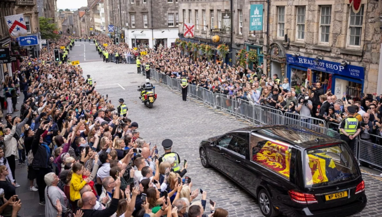 Los restos de Isabel II, la monarca más longeva del Reino Unido, salieron hoy del castillo de Balmoral, en Escocia, donde falleció el jueves pasado a los 96 años, y recorrieron varias localidades hasta llegar a Edimburgo, en el inicio de un cortejo que permitirá a los británicos y visitantes despedirse de su reina. El féretro, colocado en la parte trasera de un coche fúnebre Mercedes Benz negro y cubierto con el estandarte real -tres leones dorados para Inglaterra, un león rojo por Escocia y un arpa por Irlanda- y…