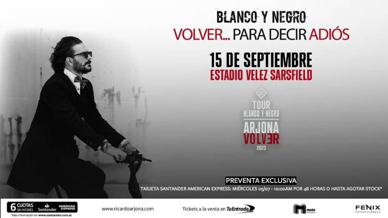 Ricardo Arjona, uno de los artistas más importantes en la música latina, anunció las fechas de los conciertos que darán cierre a su aclamada gira Blanco y Negro en Argentina y Chile. El guatemalteco tiene el récord histórico en nuestro país de 34 Luna Park, 8 Estadios GEBA, 6 Estadios Boca Juniors, 5 Estadios Vélez Sársfield, 5 DirecTV Arena y 5 Orfeo Superdomo. En sus dos años de gira, lleva 160 conciertos y constantes sold outs, visitando 110 ciudades entre Latinoamérica, Europa y Estados Unidos donde recientemente realizó dos funciones con entradas agotadas en el místico Madison Square Garden, además de…