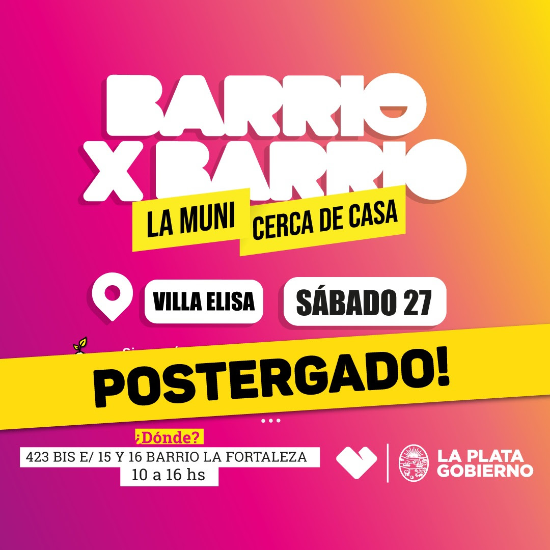 Luego de establecer el Nivel de Alerta ‘Amarillo’ por tormentas de variada intensidad, se suspendió la edición del programa “Barrio x Barrio” prevista para mañana en Villa Elisa. Según precisaron desde la Comuna, durante los próximos días se informará la nueva fecha y horario en que será reprogramada la jornada.De esta manera, la iniciativa itinerante que acerca servicios municipales a los diferentes barrios de la Ciudad, fue suspendida a raíz de las condiciones climáticas adversas que se esperan durante hoy y mañana.Cabe mencionar que “Barrio x Barrio” les brinda a…