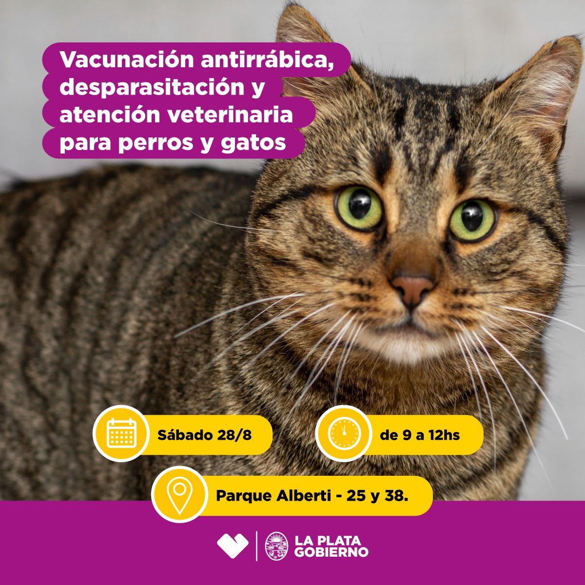 La Municipalidad de La Plata desplegará mañana un nuevo operativo de vacunación antirrábica, desparasitación y atención primaria de la salud para perros y gatos en forma gratuita. En esta oportunidad, los veterinarios comunales estarán Parque Alberti. Según informaron desde la Secretaría de Salud local, los profesionales de la Comuna atenderán el sábado, de 9 a 12 horas, en el espacio público de 25 y 38. Allí, aplicarán en forma gratuita la vacuna que se debe colocar anualmente, en forma obligatoria, durante toda la vida de un animal. También atenderán consultas…