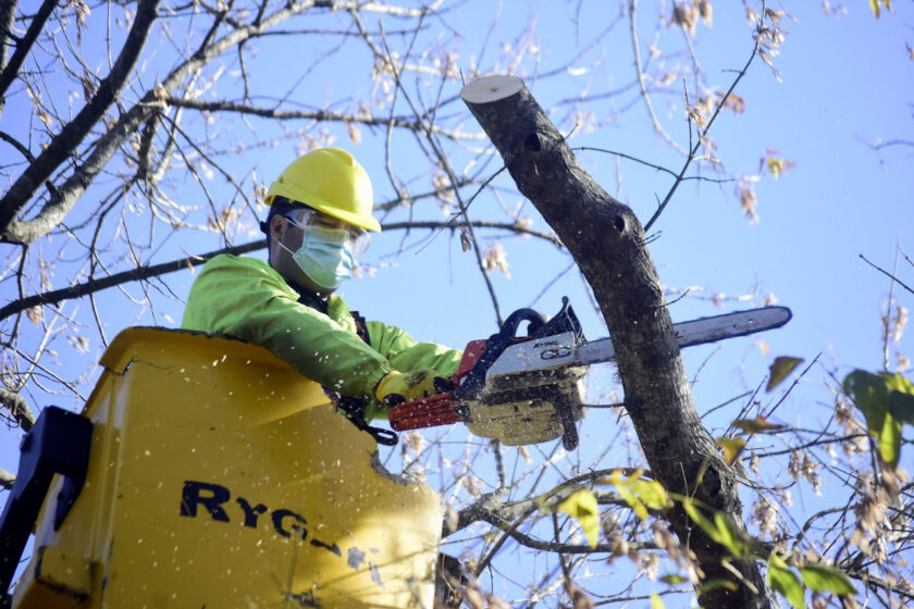“Este trabajo se lleva adelante durante esta época del año con el objetivo de conservar los ejemplares saludables y extraer aquellos que se encuentran en riesgo de caída ante tormentas o vientos fuertes. También se intervienen aquellos que obstruyen visibilidad de la señalética y obstaculizan semáforos, cámaras de seguridad y columnas de alumbrado”, explicó el Secretario de Espacios Públicos, José Etchart.
