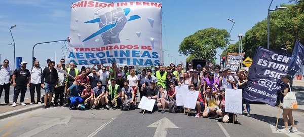 Los trabajadores de la empresa GPS que trabaja para Aerolíneas Argentinas, agrupados en la Comisión Interna de Tercerizados, realizaron hoy un corte en el acceso a Aeroparque sobre avenida Costanera para protestar «contra los ataques» que sufren por parte de la firma privada.