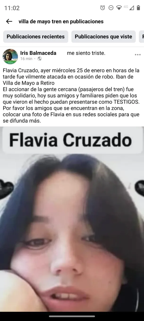 El hecho tuvo lugar en la tarde de este miércoles, cuando Flavia Cruzado iba de Villa de Mayo a Retiro en una formación del tren Belgrano Norte. En ese momento un delincuente la quitó el celular escapó con el tren en movimiento.