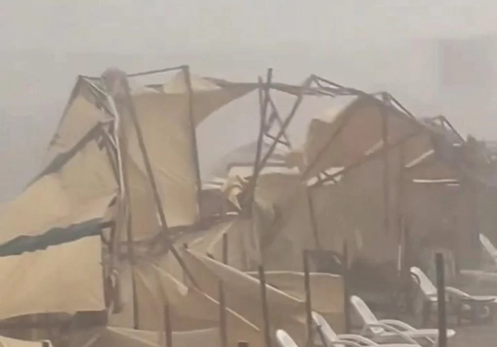 En Miramar, ubicada 54 kilómetros al sur de Mar del Plata, se desató en la tarde, pasadas las 17:30, un fuerte temporal con viento y granizo que causó destrozos en los techos de la terminal de ómnibus, viviendas particulares y la feria de emprendedores ubicada en la plaza central.