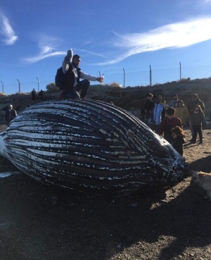 El pronunciamiento oficial se conoció tras observar ayer a los vecinos, en su mayoría jóvenes, que subieron a las redes sociales fotografías sobre el lomo del cadáver e incluso introduciendo el cuerpo dentro de las fauces del enorme mamífero, que por estas horas desprende gases y fluidos propios del proceso de descomposición.