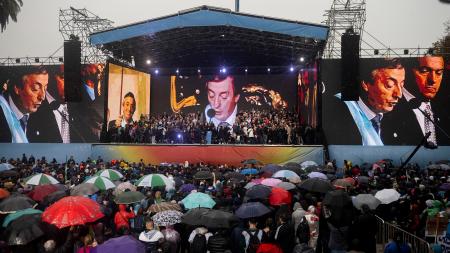 Pero en esta ocasión también se destacaron grupos de amigos y familias completas para ubicarse lo más cerca posible del imponente escenario elevado a tres metros del suelo, con un frente de más de 15 metros de largo, montado frente a la Casa Rosada.