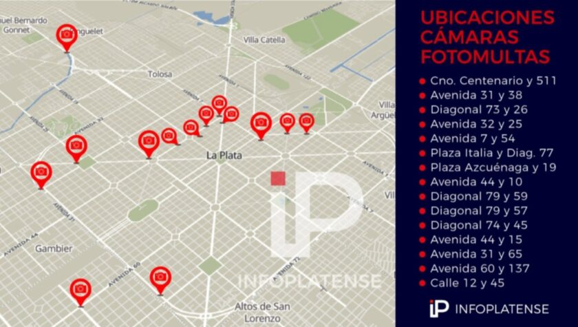 Algunos de los puntos de emplazamiento de los dispositivos son las esquinas conformadas por Camino Parque Centenario y calle 511, avenida 31 y avenida 38; diagonal 73 y calle 26; avenida 32 y avenida 25; avenida 7 calle 54; Plaza Italia y diagonal 77; Plaza Azcuénaga y avenida 19; Avenida 44 y esquina 10; entre otras intersecciones.